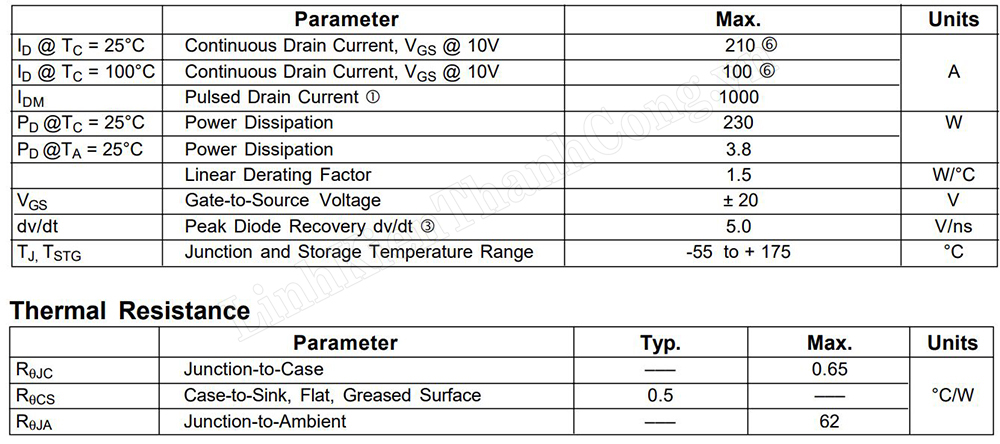IRF3703 MOSFET N-CH 210A 30V tháo máy