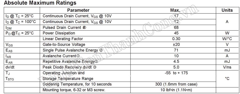 - Tham khảo Datasheet IRFZ24: >>Tại Đây<<