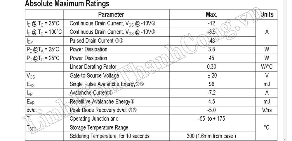 - Tham khảo Datasheet IRF9Z24: >>Tại Đây<<