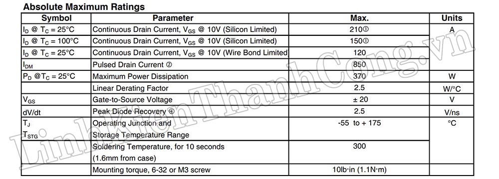 - Điện áp VGS: ± 30V