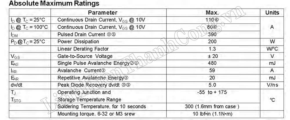 IRFP064N MOSFET N-CH 110A 55V tháo máy