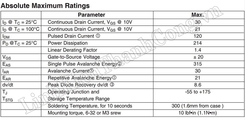 IRFP250N MOSFET N-CH 30A 200V (tháo máy)