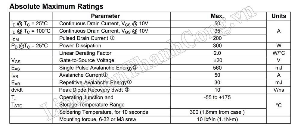IRFP260 MOSFET N-CH 50A 200V tháo máy
