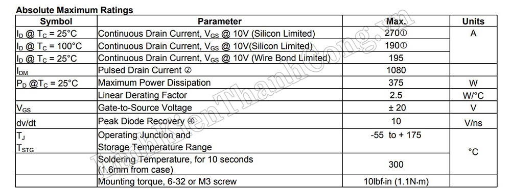 IRFP3006 MOSFET N-CH 195A 60V tháo máy