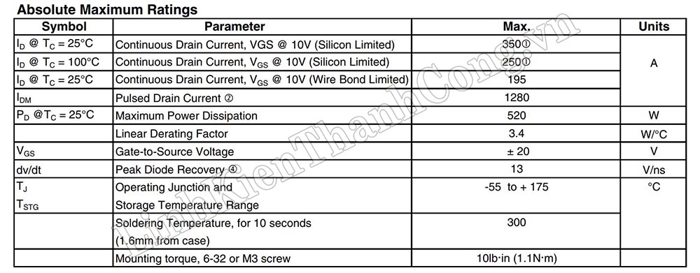 IRFP4368 MOSFET N-CH 195A 75V tháo máy