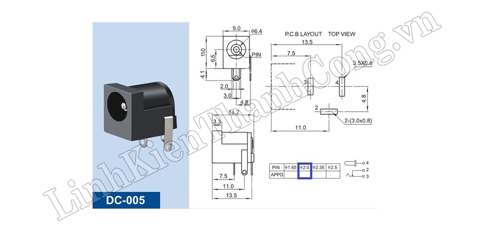 Jack Nguồn DC-005 5.5x2.1mm Cái
