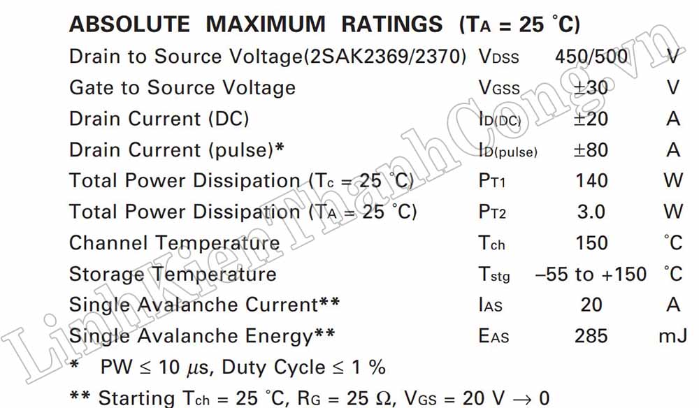 - Điện áp VGS: ± 30V