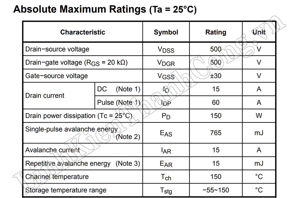 - Phân loại: MOSFET N-CH (kênh N)