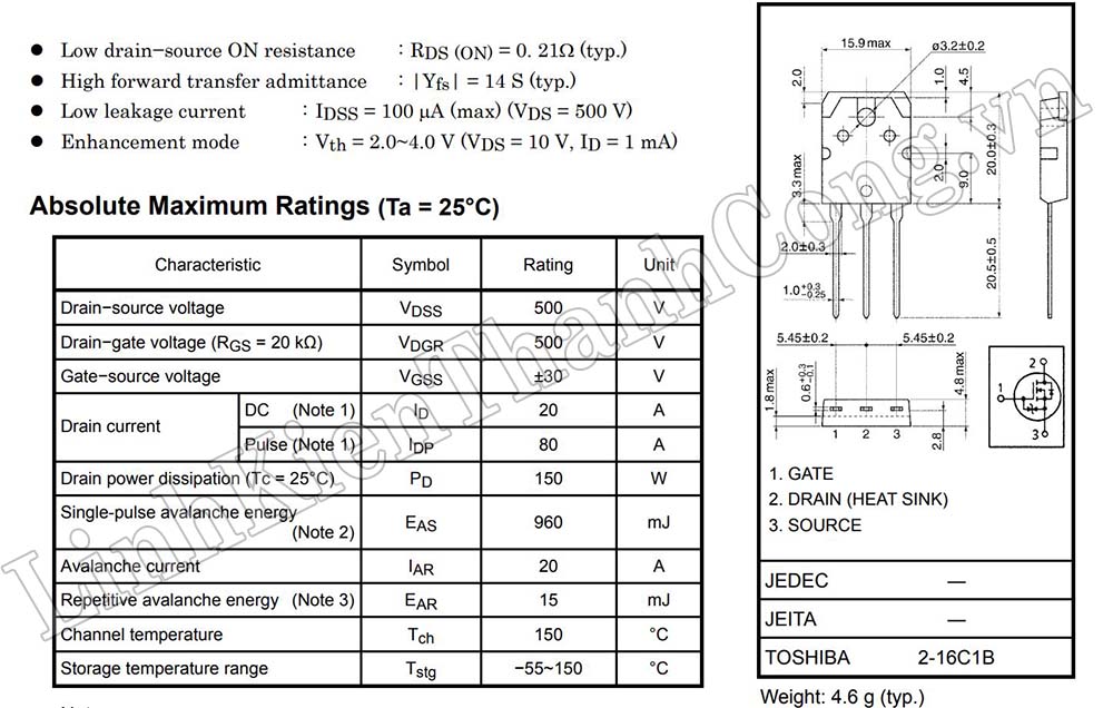 - Phân loại: MOSFET N-CH (kênh N)
