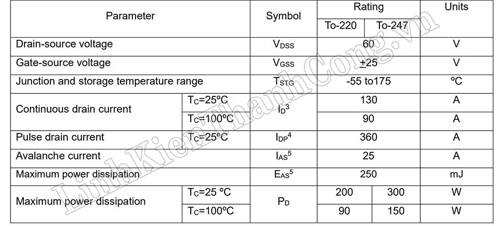 KIA2906A MOSFET N-CH 130A 60V TO3P