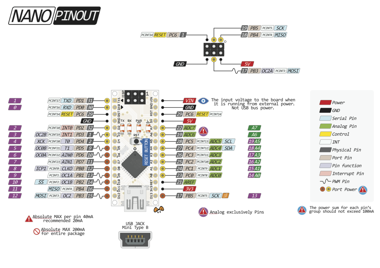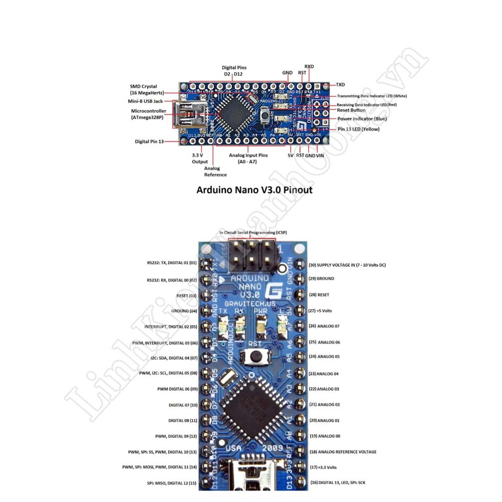 Tên pin Arduino Nano ICSP |