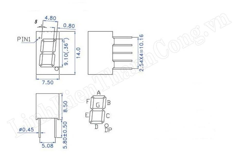 LED 7 thanh 0.36inch 1 số màu đỏ (Katot chung)