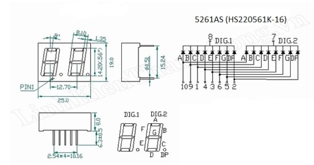 LED 7 thanh 0.36inch 2 số màu đỏ (Katot chung)
