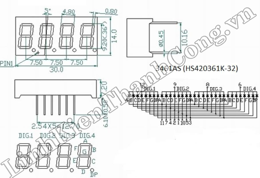 LED 7 thanh 0.36inch 4 số màu đỏ (Katot chung)