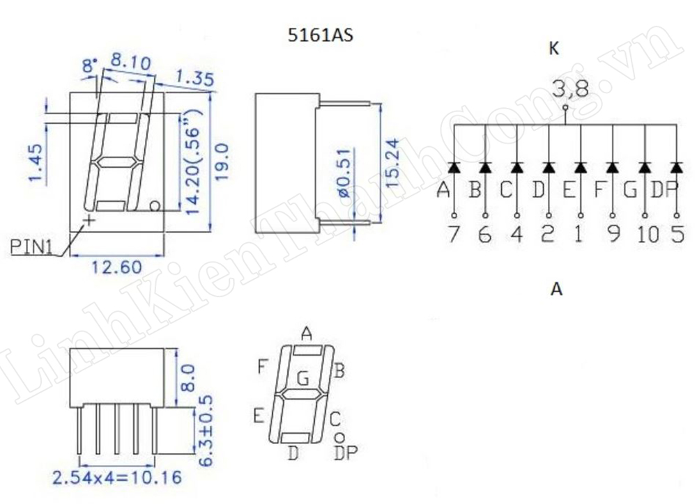 LED 7 thanh 0.56inch 1 số màu đỏ (Katot chung)