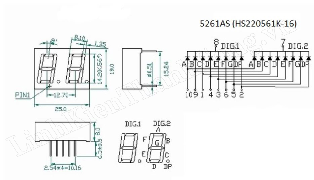 LED 7 thanh 0.56inch 2 số màu đỏ (Katot chung)