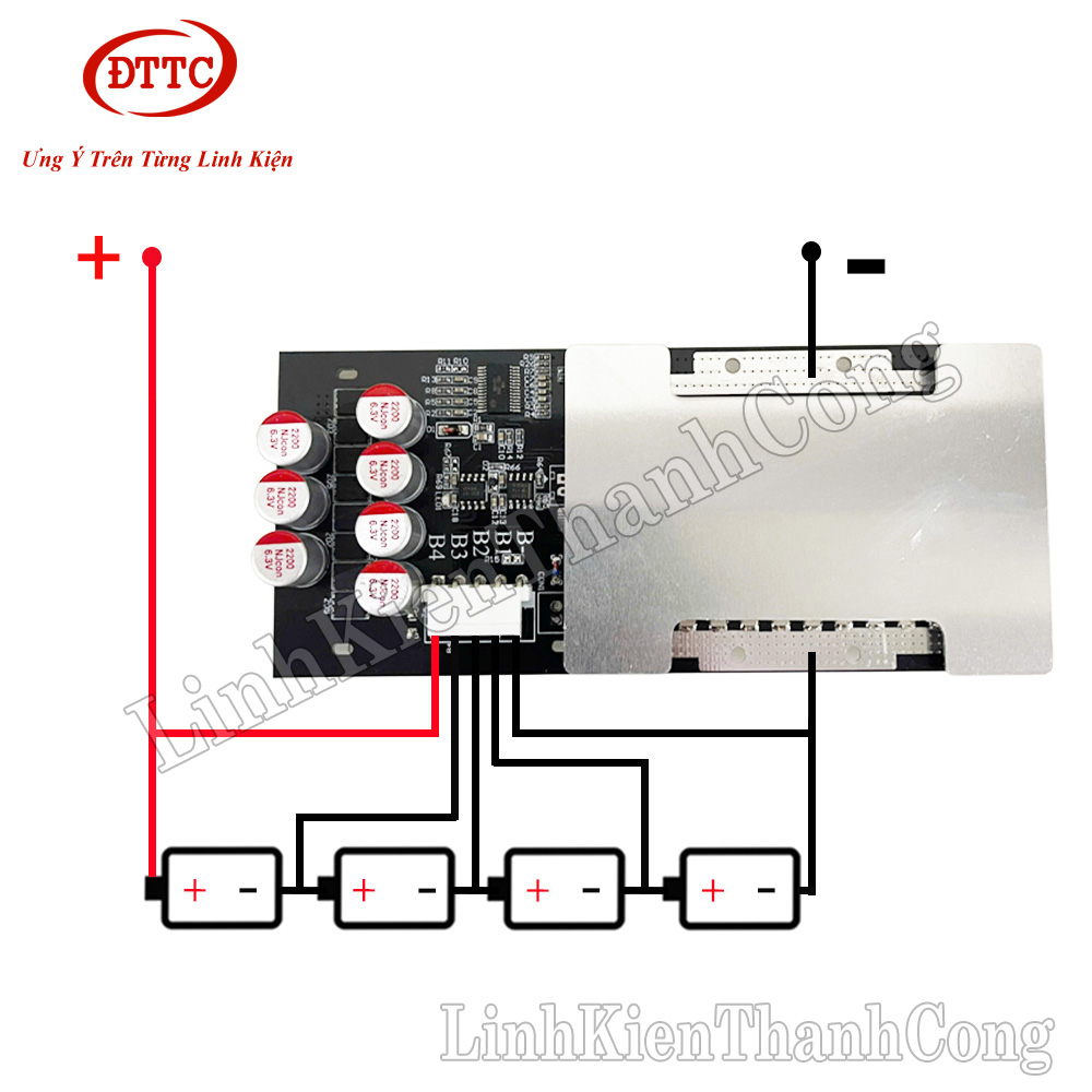- Mạch Bảo Vệ 4S 150A Kết Hợp Cân Bằng Chủ Động 5A là giải pháp toàn diện dành cho các pack pin 4 cell (4S) sử dụng trong các hệ thống công suất lớn như xe điện, pin năng lượng mặt trời, hoặc thiết bị dự phòng. Mạch được tích hợp chức năng cân bằng chủ động 5A, giúp tối ưu hiệu suất nạp/xả của từng cell, kéo dài tuổi thọ pin và đảm bảo an toàn trong quá trình sử dụng.