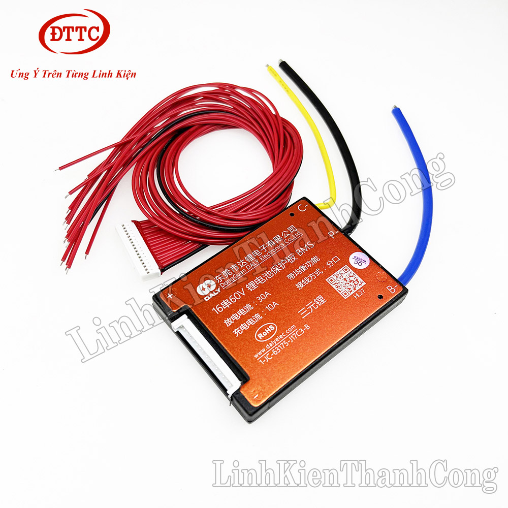 - Mạch Bảo Vệ BMS 60V 16S 30A Cho Pin 3.7V là một bộ thiết bị điện tử giám sát và quản lý hoạt động của pin Li-ion. Chức năng chính của Mạch Bảo Vệ BMS là ngăn ngừa tình trạng sạc quá mức, bảo vệ và kéo dài tuổi thọ của pin là một công nghệ vô cùng cần thiết để đảm bảo sự an toàn và hiệu quả của các thiết bị sử dụng pin như xe đạp điện, xe ô tô điện hay hệ thống lưu trữ năng lượng mặt trời.