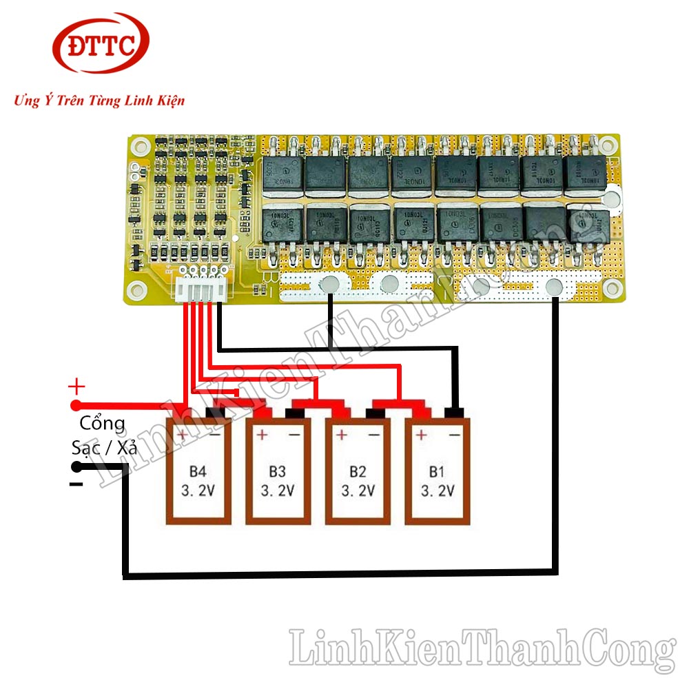 Mạch Bảo Vệ Cho Pin Sắt LiFePO4 (3.2V) BMS 4S 100A (Tiger) - Hệ 4 Cell Nối Tiếp