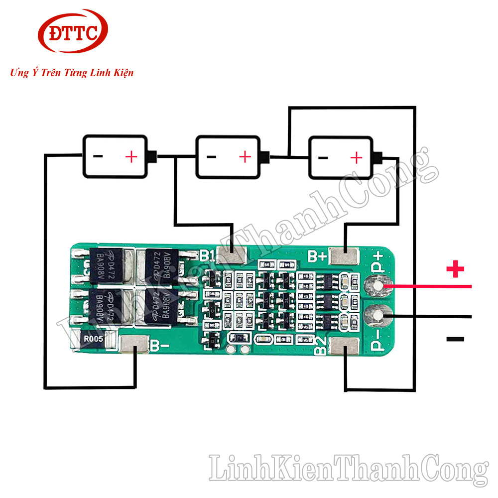 - Mạch Bảo Vệ Pin 18650 BMS 3S 15A - Hệ 3 Cell Nối Tiếp là sản phẩm thường dùng để làm mạch bảo vệ khi lắp ráp sử dụng pin cho các sản phẩm như xe đạp điện, xe máy điện,...hay cho các đòng máy khoan cần dòng sử dụng cao.