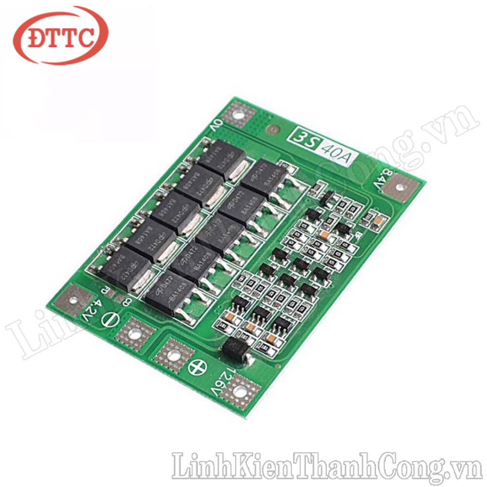 - Mạch Bảo Vệ Pin BMS 3S 40A - Hệ 3 Cell Nối Tiếp là sản phẩm thường dùng để làm mạch bảo vệ khi lắp ráp sử dụng pin cho các sản phẩm như xe đạp điện, xe máy điện,...hay cho các đòng máy khoan cần dòng sử dụng cao.