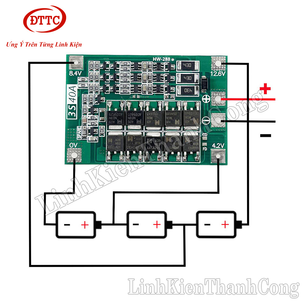 Mạch Bảo Vệ Pin BMS 3S 40A - Hệ 3 Cell Nối Tiếp