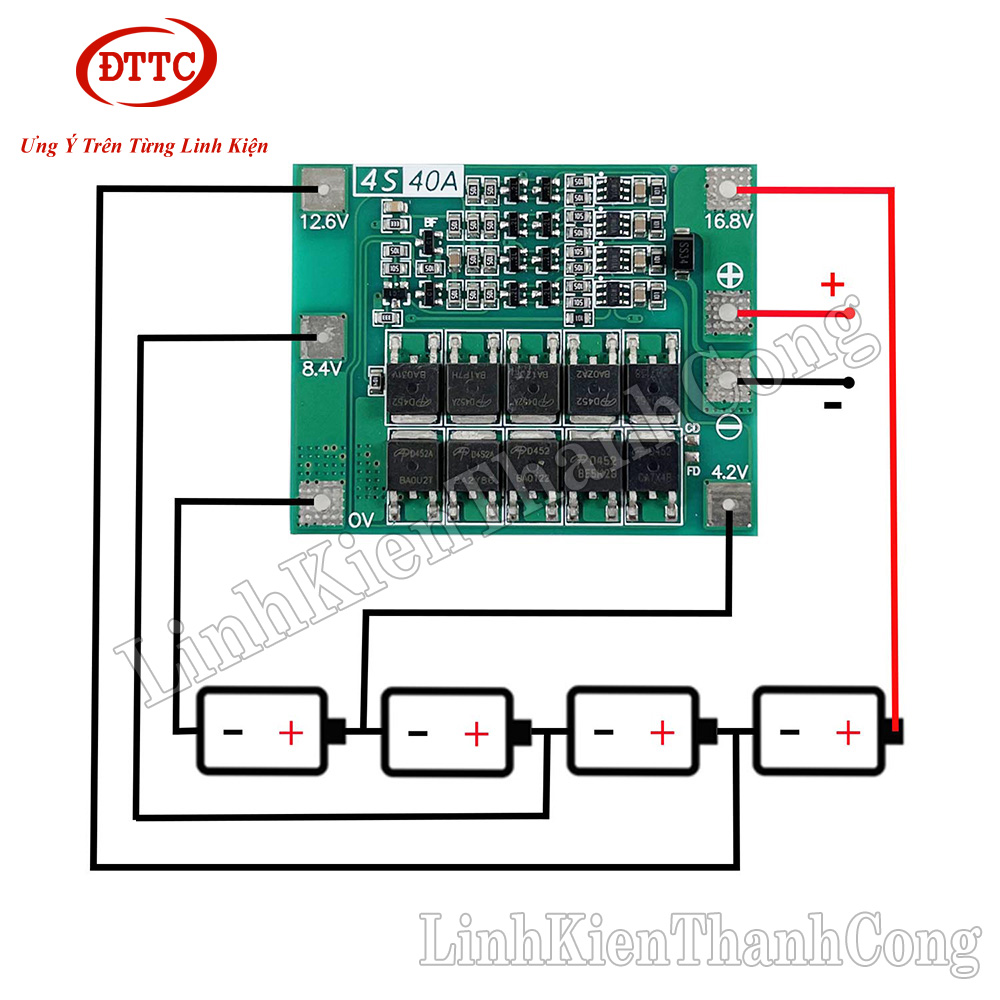 Mạch Bảo Vệ Pin 18650 BMS 4S 16.8V 40A - Hệ 4 Cell Nối Tiếp