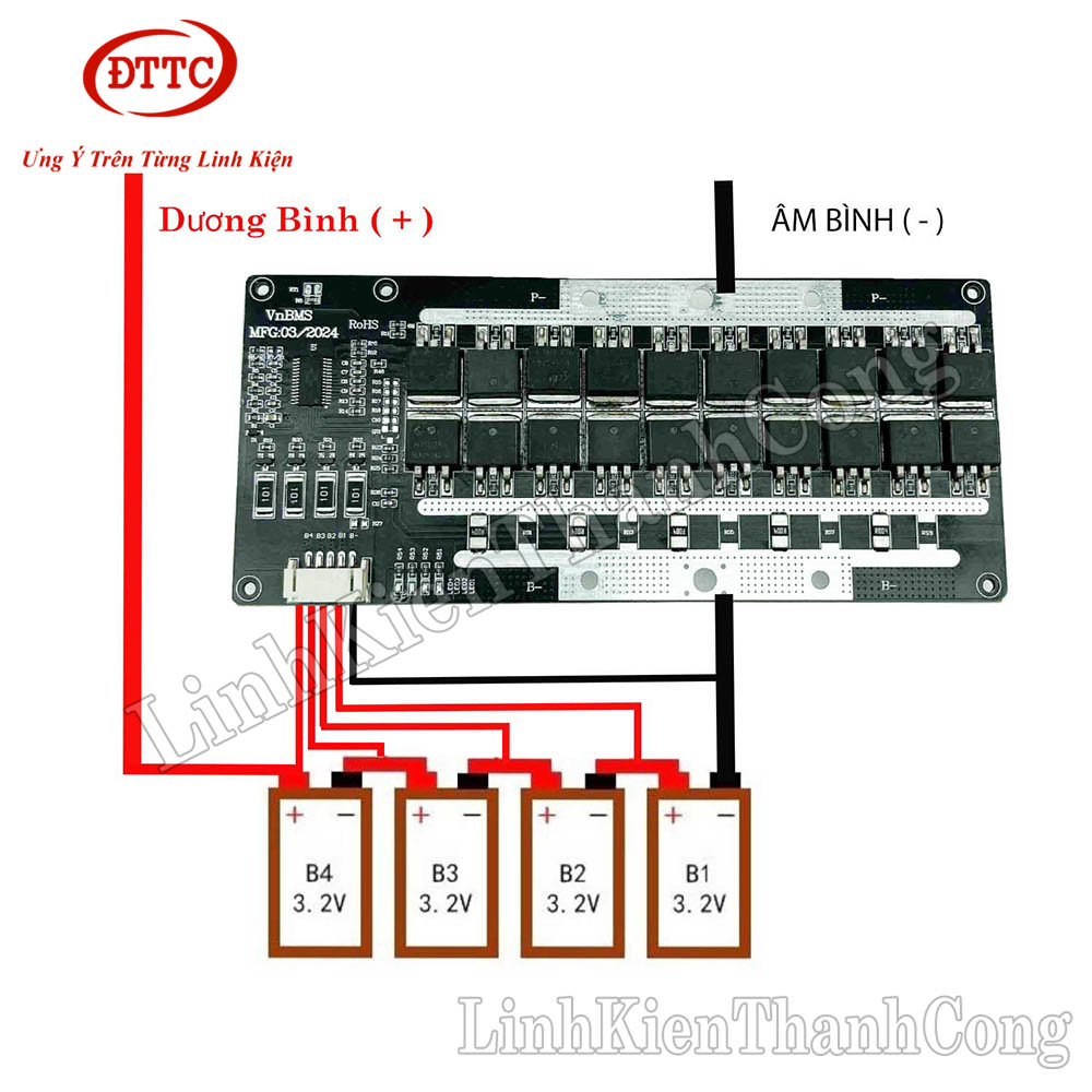 Mạch Bảo Vệ VnBMS 3.2V 4S 200A 40 Mosfet Sạc Xả Chung + Mạch Bluetooth