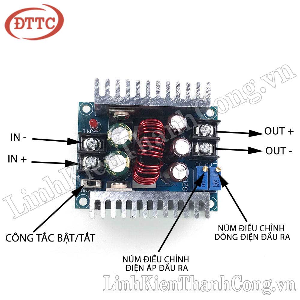 + Thay đổi điện áp đầu ra bằng biến trở vi chỉnh, kí hiệu trên mạch CC
