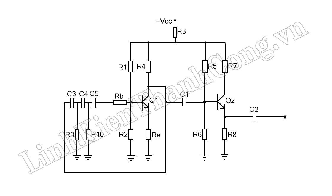 + C3, C4, C5: Vai trò dịch pha tổng 180 độ (Mỗi tụ dịch pha 60 độ)