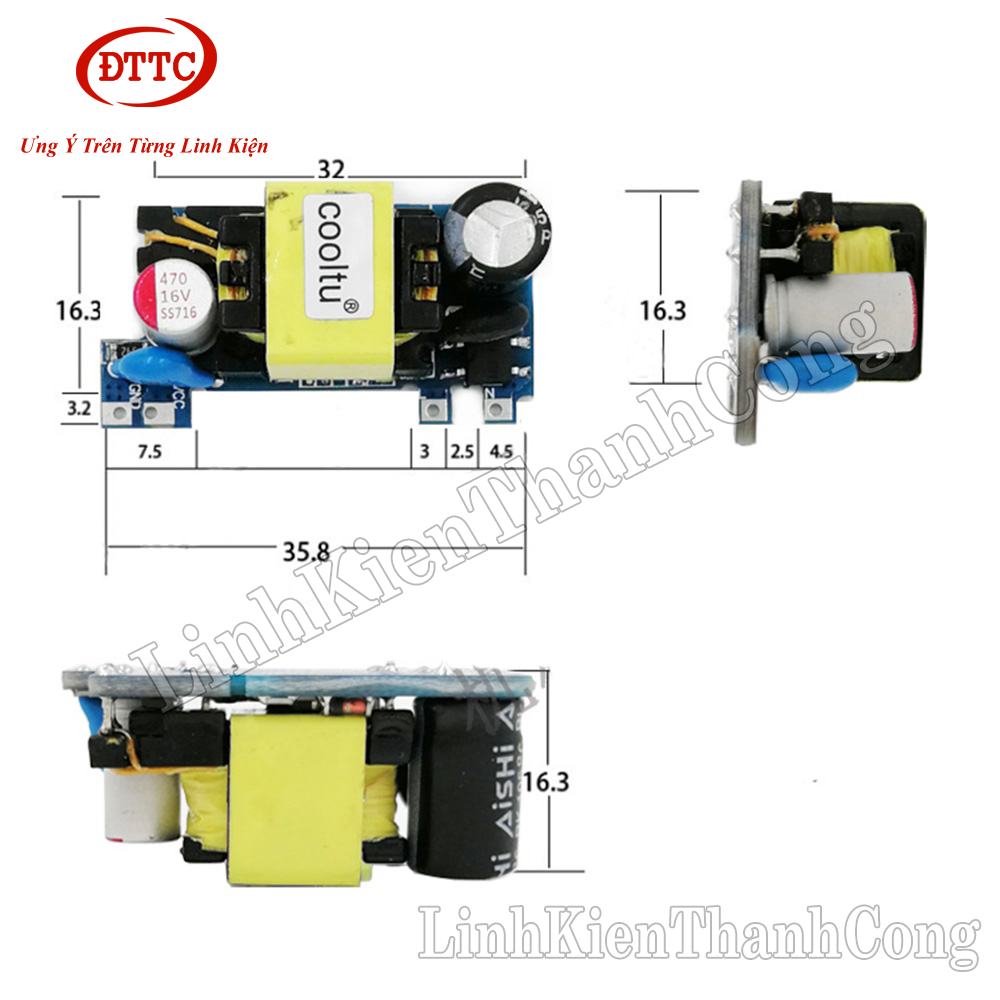 Mạch nguồn AC-DC Mini 220V-12V 1A