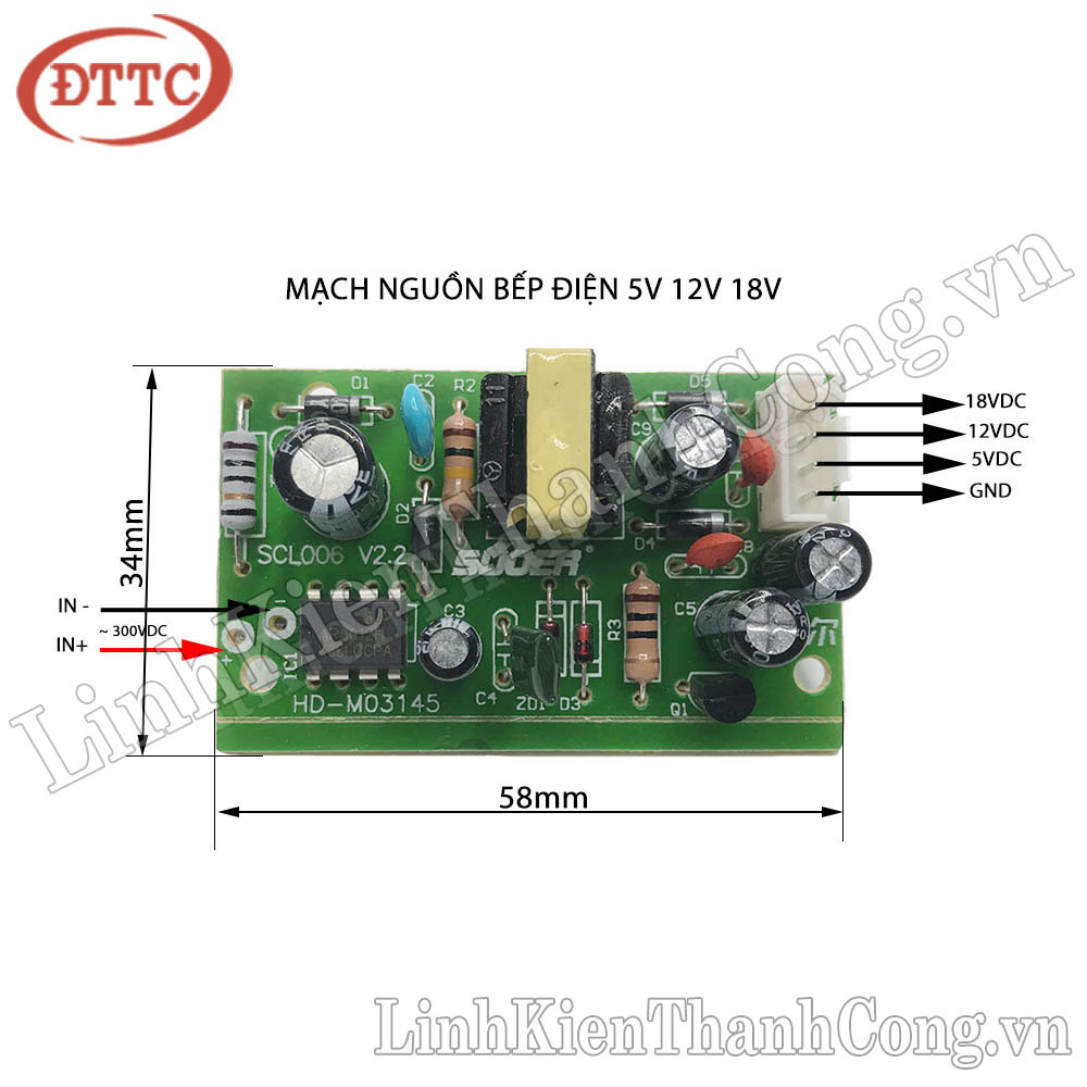 - Điện áp ra nhiều ngõ: 5V, 12V, 18V