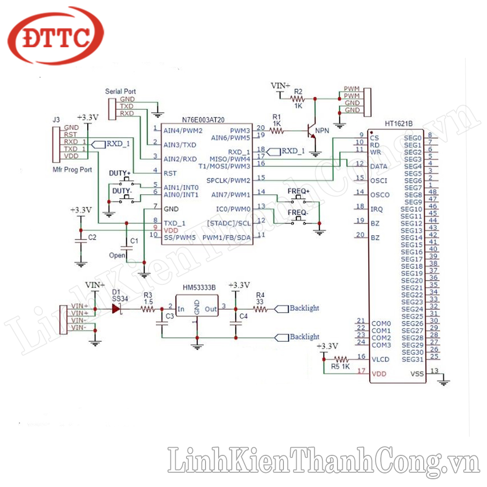 - Xung phát ra là xung vuông, hiển thị trên màn LCD