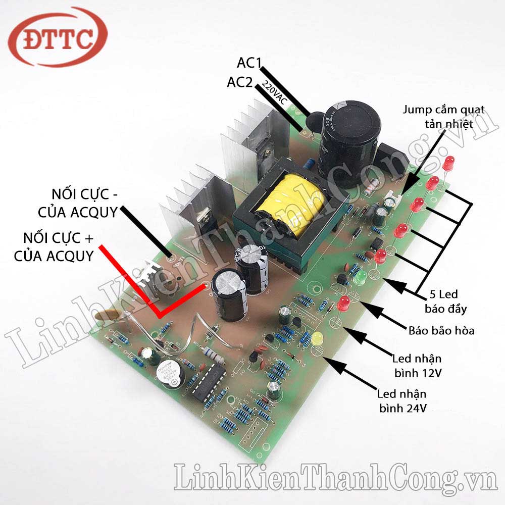 - LED hiển thị chế độ sạc hoặc ngắt, dung lượng acquy