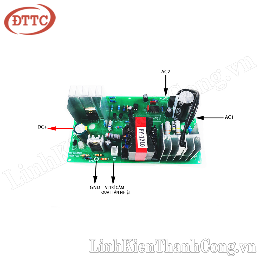 - Hàn 2 dây nguồn 220VAC với 2 vị trí AC1 và AC2 trên mạch