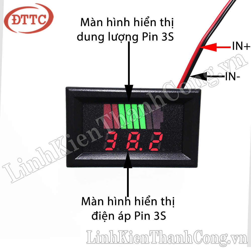 - Module Đo Điện Áp + Dung Lượng Pin 3S 12.6V là sản phẩm chuyên dụng dùng để đo dung lượng pin 3S và được hiển thị rõ ràng thông qua màn hình hiển thị vạch pin.