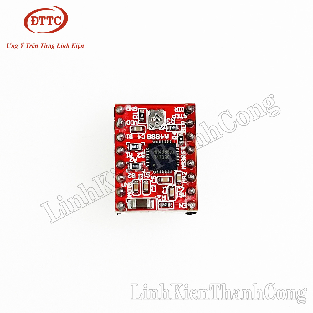 - Mô-đun trình điều khiển A4988 được sử dụng để điều khiển tốc độ và hướng của động cơ, chủ yếu được sử dụng trong chế tạo robot, đồ chơi, máy quét, máy in 3D để điều khiển chuyển động. Nó có khả năng vận hành các bước động cơ lưỡng cực ở các chế độ full step, 1/2 step, 1/4 step, 1/8 step, 1/16 step.