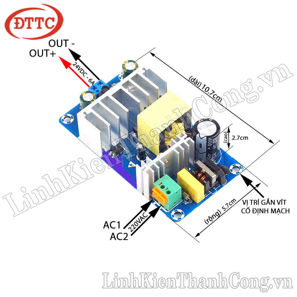 - Mạch có chức năng chuyển đổi điện áp từ AC sang 24V DC 6A