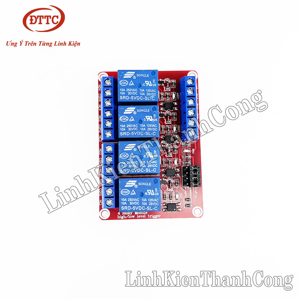 - Module Relay 4 Kênh 5V Có Opto Cách Ly dùng dòng điện nhỏ của vi điều khiển, arduino, PLC, esp8266,... để điều khiển các thiết bị điện, đồ dùng điện hoạt động ở mức điên áp cao như điện sinh hoạt, hay trong các ứng dụng thiết bị thông minh.