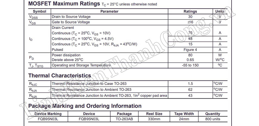- Chú ý: Sản phẩm dùng làm mosfet chống ngược cho các mạch công suất