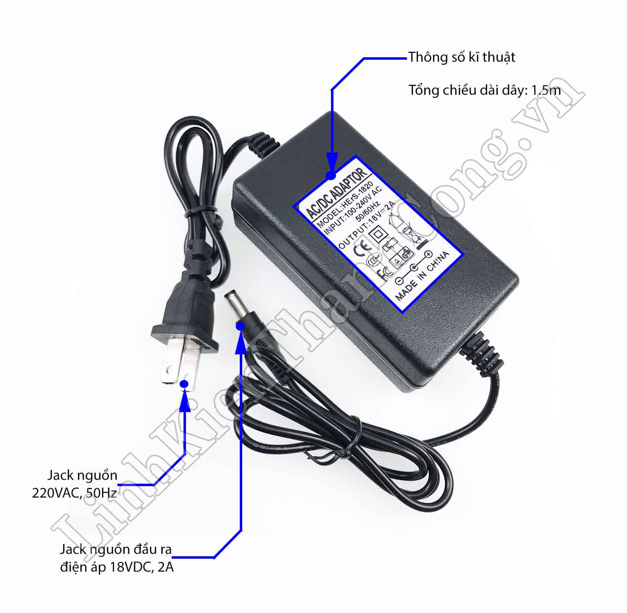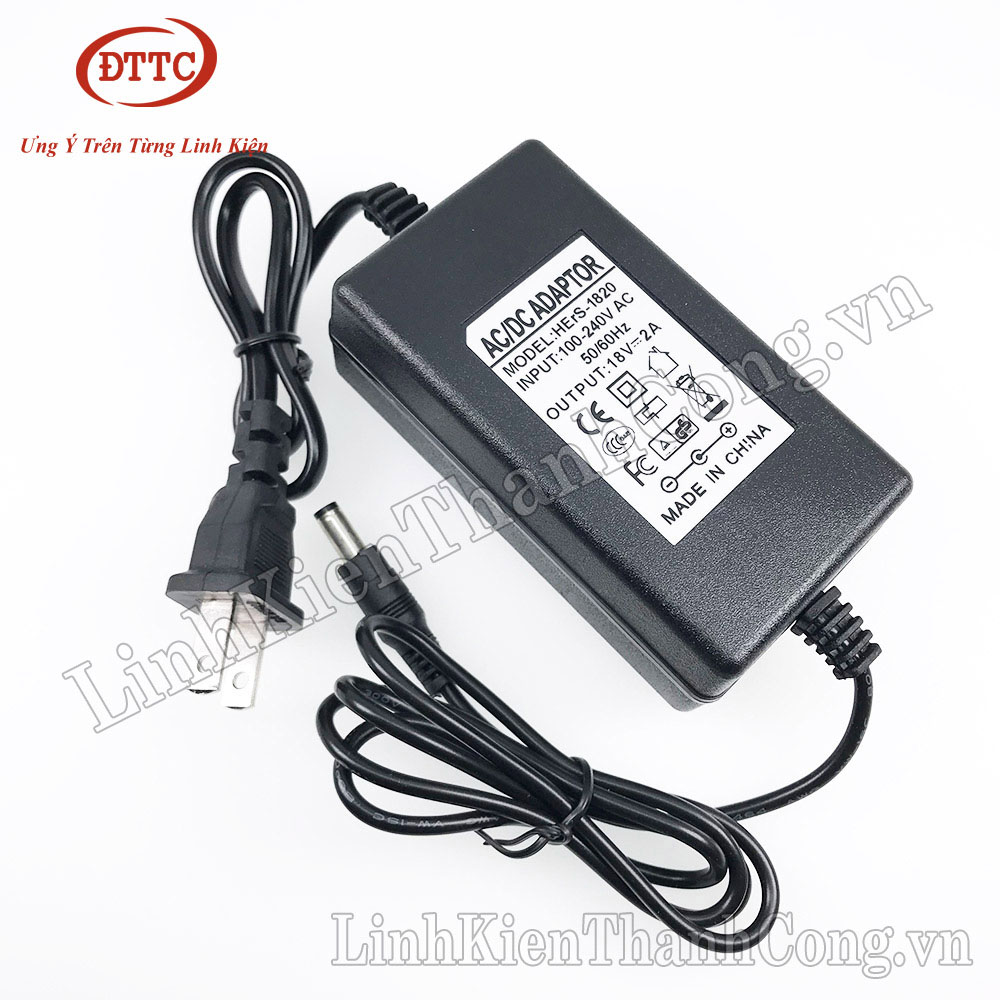 - Nguồn Adapter 18V 2A là một loại nguồn xung, có thể chuyển đổi từ 220VAC sang 18VDC, thường được sử dụng để cấp nguồn cho các thiết bị như: Tivi box, Camera, Switch, các bo mạch điều khiển, module điều khiển sử dụng nguồn bên ngoài...