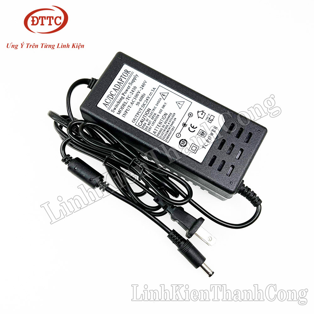 - Nguồn Adapter 24V 3A là một loại nguồn xung, có thể chuyển đổi từ 220VAC sang 24VDC, thường được sử dụng để cấp nguồn cho các thiết bị như: Tivi box, Camera, Switch, các bo mạch điều khiển, module điều khiển sử dụng nguồn bên ngoài...
