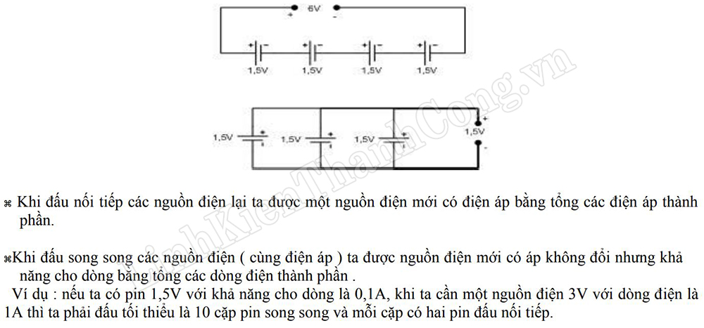 - Để giải quyết vấn đề đó thì chúng ta hoàn toàn có thể thiết kế cho mình các nguồn điện DC với các cách mắc nối tiếp hay song song để sao cho đáp ứng được nhu cầu của chúng ta