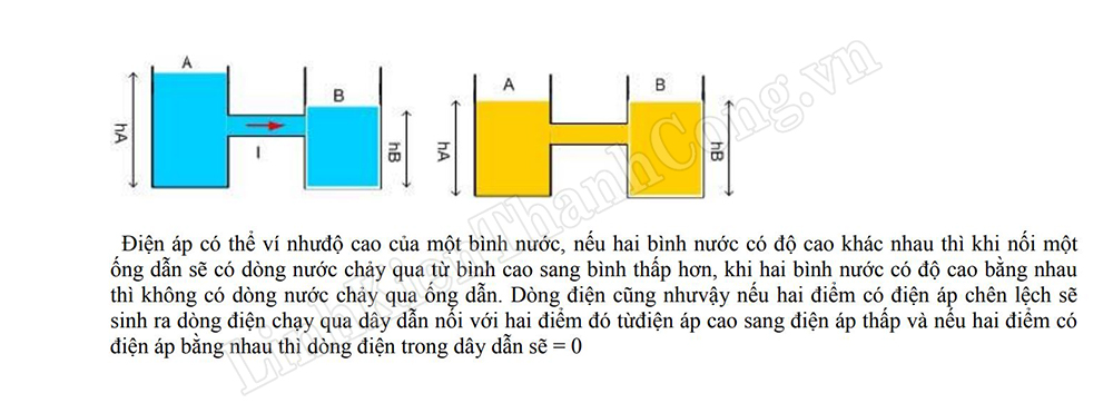 - Khi mật độ các hạt mang điện tích tập trung không đều tại 2 vị trí A và B, nếu ta nối một dây dẫn từ A sang B sẽ xuất hiện dòng chuyển động của các điện tích từ nơi có mật độ cao sang nơi có mật độ thấp, như vậy người ta gọi hai điểm A và B có chênh lệch về điện áp, và lúc này áp chênh lệch chính là hiệu điện thế.