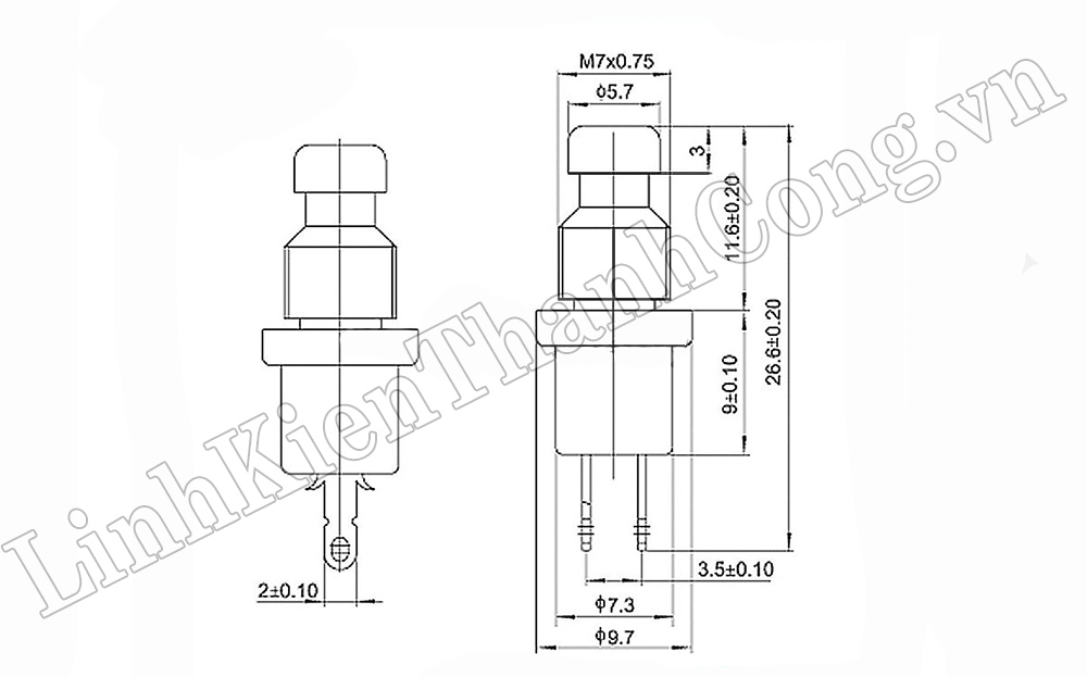 - Điện áp: 250VAC/1A, 125VAC/3A