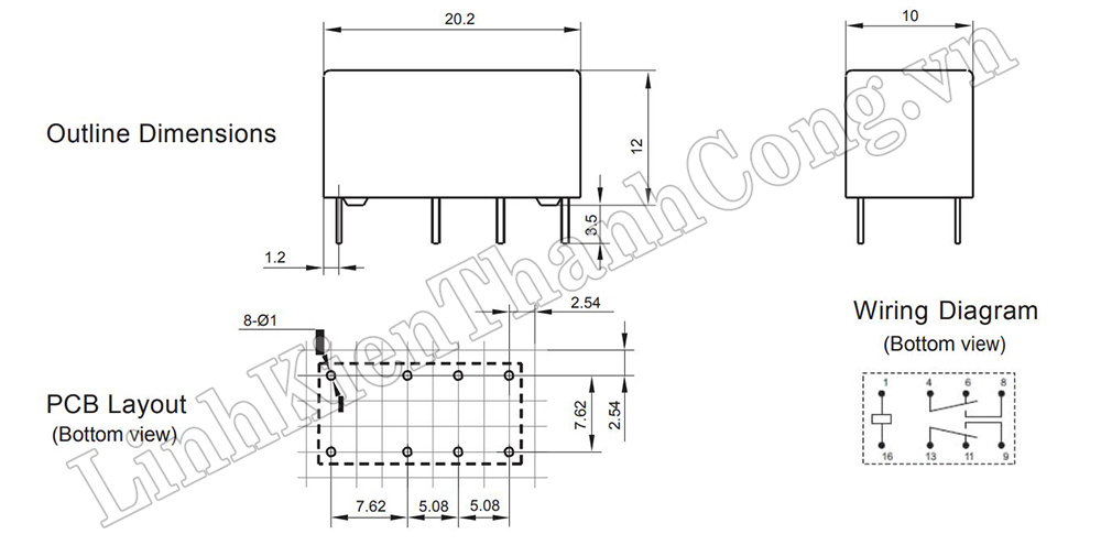 - Dòng điện tối đa qua tiếp điểm: 2A