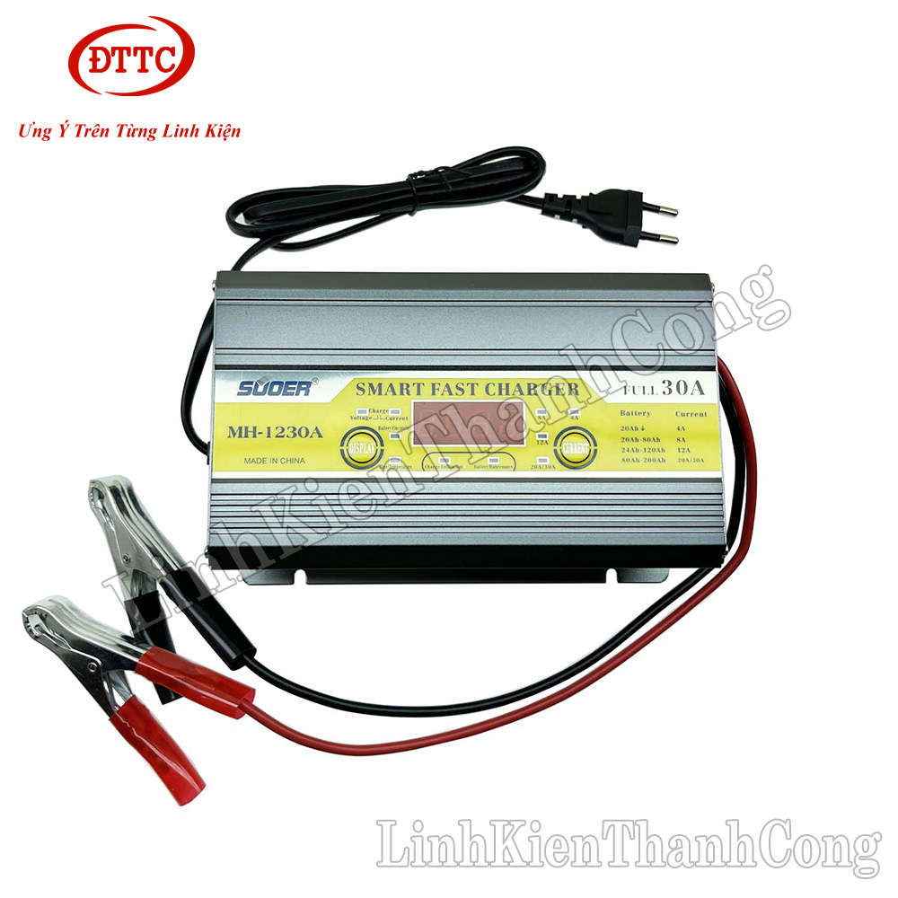 - Sạc Acquy Thông Minh SUOER MA-1230A là sản phẩm chuyên dùng để sạc cho các dòng Acquy trên thị trường hiện nay, sạc có màn hình lcd hiển thị điện áp sạc, dòng sạc, thời gian sạc, nhiệt độ,... nên rất tiện lợi trong quá trình sử dụng.