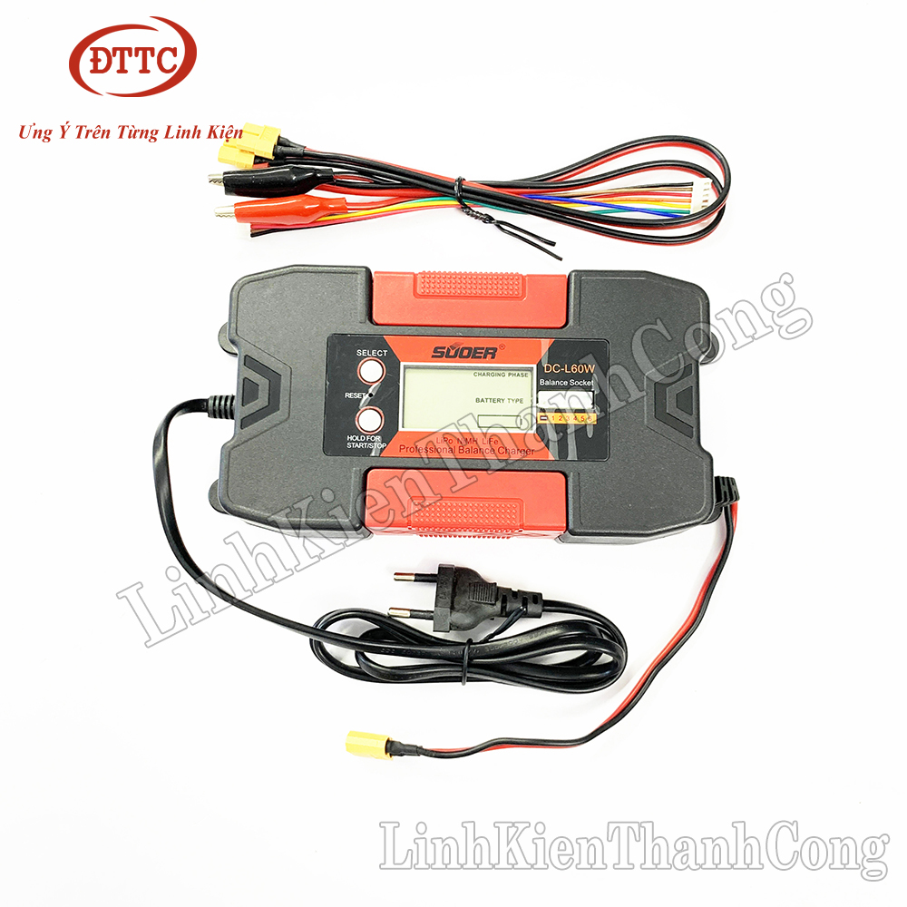 - Sạc Pin Đa Năng SUOER DC-L60W 2.8V-25V là thiết bị được thiết kế để cung cấp nguồn điện phù hợp, phục vụ cho việc sạc các loại pin Lithium Polymer, pin Lithium LiFeO4,pin NiMH.