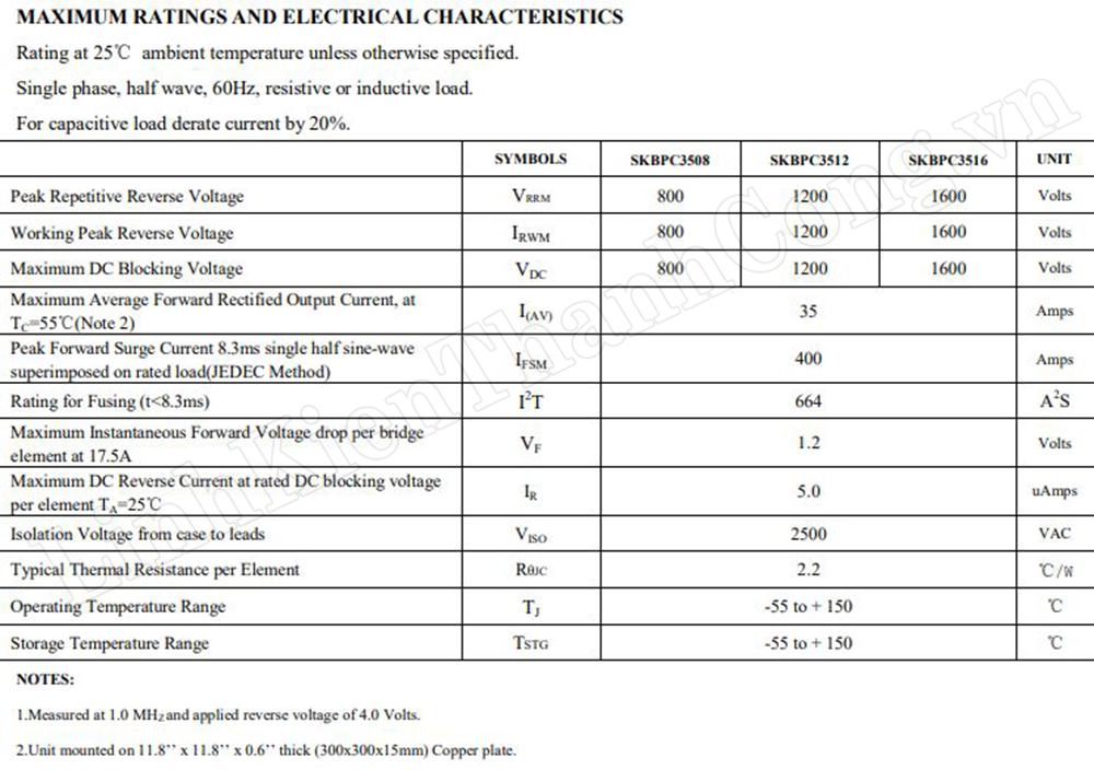 Diode Cầu 3 Phase SKBPC3516 35A 1600V