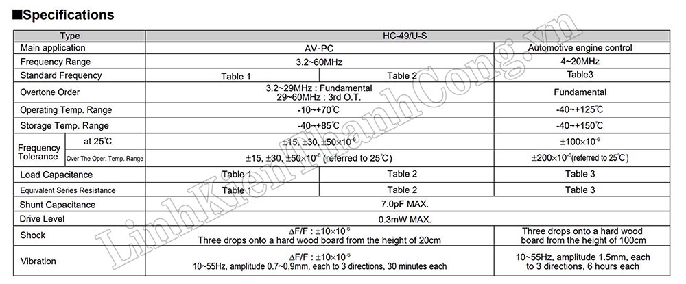 - Giá trị tần số: 20MHz